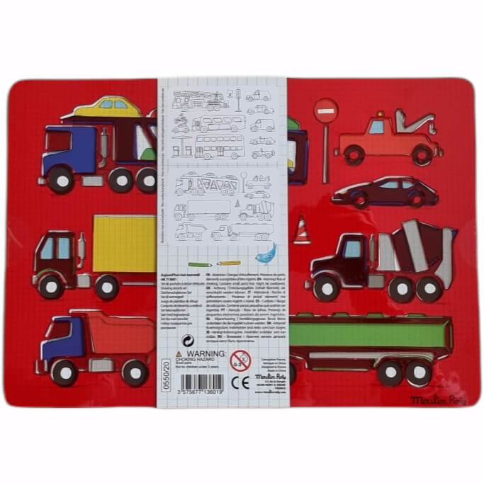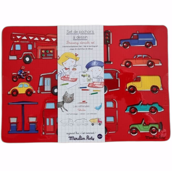 Hvert sæt indeholder 2 skabeloner af køretøjer. Fremstillet af plastik for at kunne genbruges et utal af gange. Vaskbar overflade.